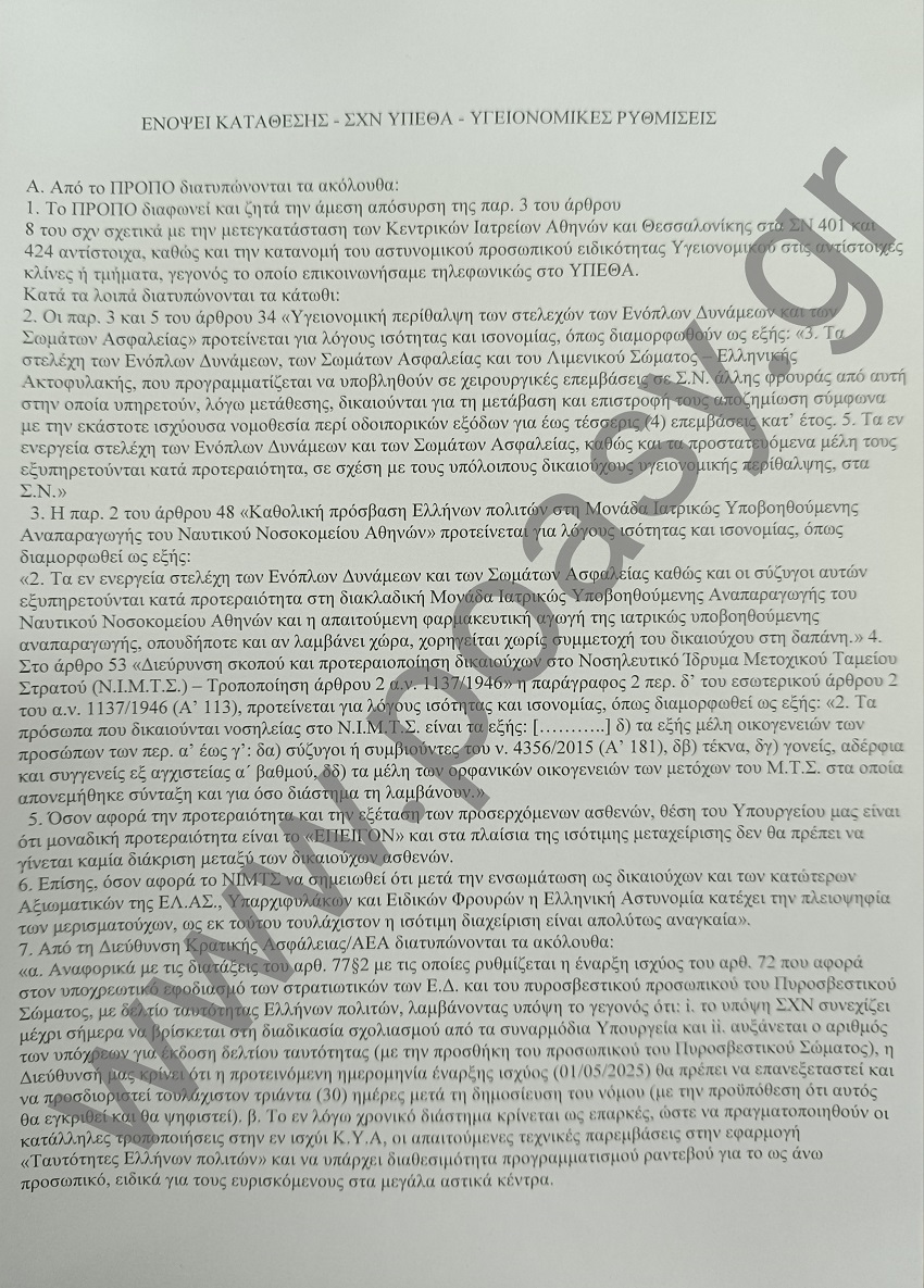 Η γενικευμένη μας αντίδραση και η έντονη διαμαρτυρία για τη ρύθμιση που εντάχθηκε σε σχέδιο νόμου του Υπουργείου Εθνικής Αμύνης στο πλαίσιο της δημόσιας διαβούλευσης (17 Μαρτίου 2025 έως 1 Απριλίου 2025) και προβλέπει, μεταξύ άλλων, την ένταξη των Κεντρικών Ιατρείων Αθηνών και Θεσσαλονίκης στα στρατιωτικά νοσοκομεία, βρήκε ευήκοα ώτα, όπως προκύπτει και από το επισυναπτόμενο mail που διακινήθηκε από το Υπουργείο Προστασίας του Πολίτη προς όλους τους εμπλεκόμενους αποδέκτες.