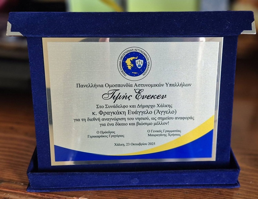 Το Διοικητικό Συμβούλιο της Ομοσπονδίας μετά από ομόφωνη απόφασή του, συνεδρίασε χθες, 23 Οκτωβρίου 2025, στο Δημοτικό Μέγαρο Χάλκης, προκειμένου να τιμήσει τον εν ενεργεία συνάδελφό μας, Μέλος της Ένωσης Αστυνομικών Υπαλλήλων Ν. Δωδεκανήσου και Δήμαρχο Χάλκης κ. Ευάγγελο ΦΡΑΓΚΑΚΗ.