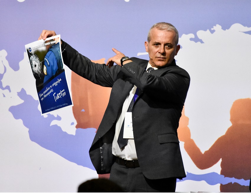 Ο Πρόεδρος της Ομοσπονδίας κ. Γρηγόρης ΓΕΡΑΚΑΡΑΚΟΣ, καλωσορίζοντας τους επίσημους προσκεκλημένους, στάθηκε ιδιαίτερα στα 40 χρόνια της Ελληνικής Αστυνομίας και στο μήνυμα που θέλαμε να εκπέμψουμε -«σχεδιάζουμε το μέλλον για εμάς και την κοινωνία»- αναδεικνύοντας όλες τις παθογένειες του αστυνομικού συστήματος, τα συσσωρευμένα προβλήματα που αντιμετωπίζει ο Έλληνας και η Ελληνίδα Αστυνομικός και τον αγώνα που δίνουμε για την επίλυσή τους, με προτάσεις και εποικοδομητικό διάλογο, υπηρετώντας τον πρωταρχικό μας στόχο, που δεν είναι άλλος από την αποτελεσματική λειτουργία της αστυνομίας, στην υπηρεσία της κοινωνίας και του κράτους.