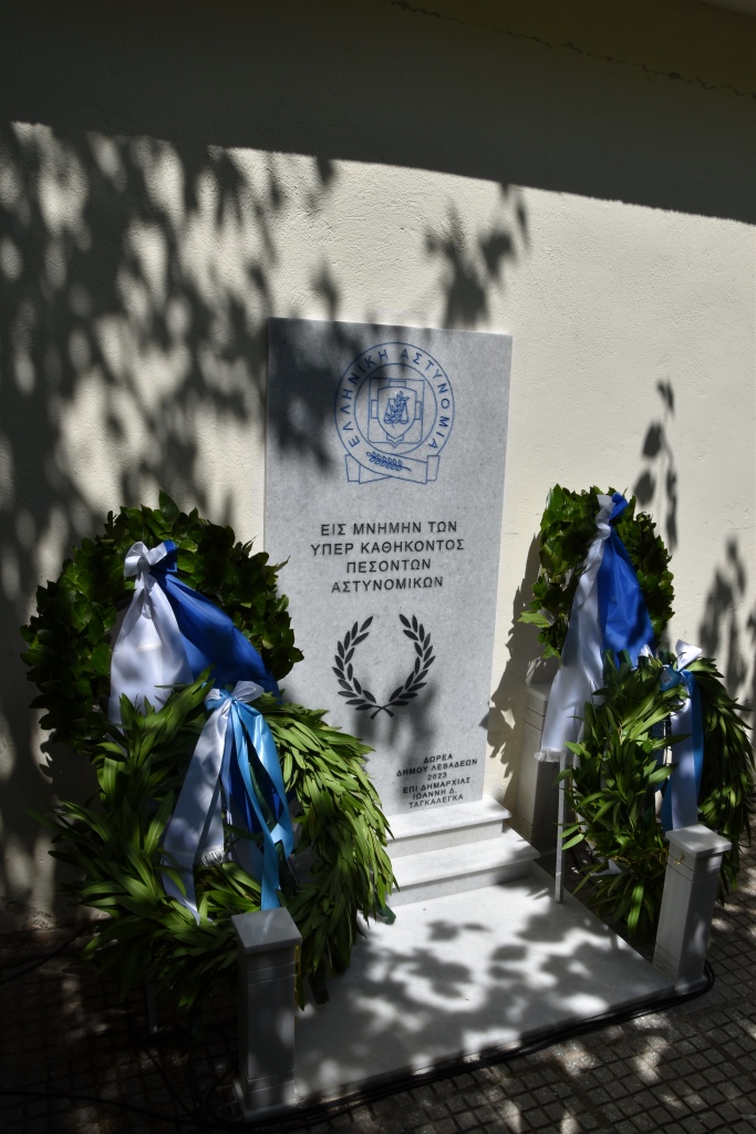 Σε κλίμα κατάνυξης τελέστηκαν το Σάββατο, 15 Ιουλίου 2023, στην έδρα της Διεύθυνσης Αστυνομίας Βοιωτίας τα αποκαλυπτήρια του Μνημείου Πεσόντων Αστυνομικών, προς τιμήν του αδικοχαμένου -πριν δέκα χρόνια στο Δίστομο- συναδέλφου μας Ανθυπαστυνόμου Ανδριτσόπουλου Γεωργίου.