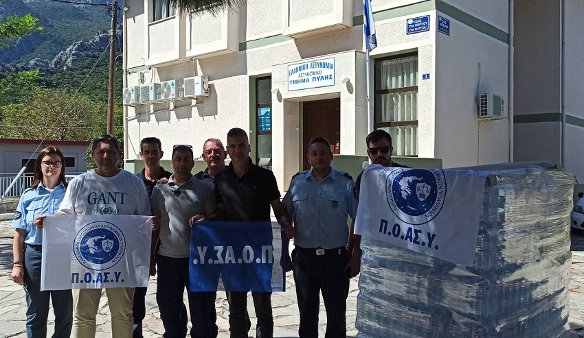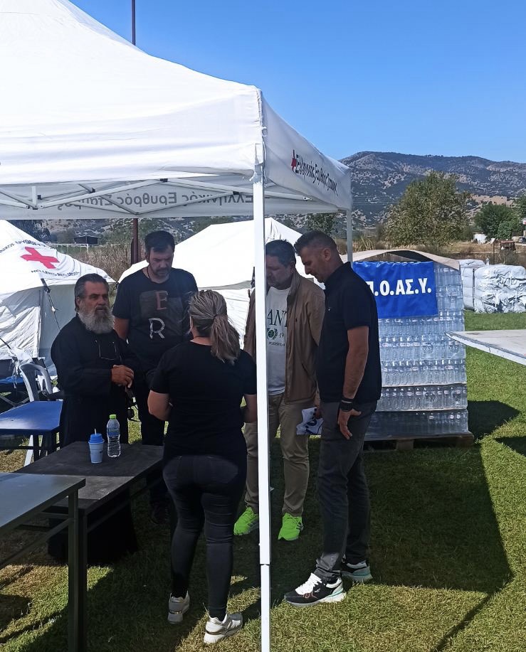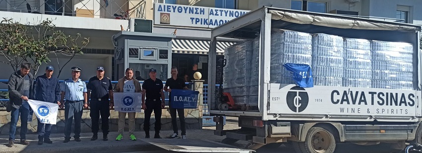 Ειδικότερα, το Προεδρείο της Ένωσης Αστυνομικών Υπαλλήλων Τρικάλων, αποτελούμενο από τον Πρόεδρο κ. Ιωάννη ΑΝΑΓΝΩΣΤΟΥ, τον Γενικό Γραμματέα κ. Λάμπρο ΜΗΤΣΙΚΟ και τον Αντιπρόεδρο κ. Αριστοτέλη ΣΙΑΚΑΒΑΡΑ, παρέδωσε ποσότητες πόσιμου νερού στους διοικητές των Αστυνομικών Τμημάτων Μετεώρων, Φαρκαδόνας και Πύλης, καθώς και στην κατασκήνωση του Ερυθρού Σταυρού στη Φαρκαδόνα.