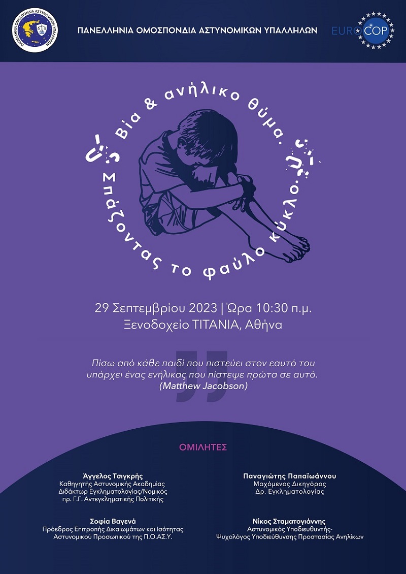 ΗΜΕΡΙΔΑ της ΠΟΑΣΥ: «Βία και ανήλικο θύμα, σπάζοντας τον φαύλο κύκλο»
