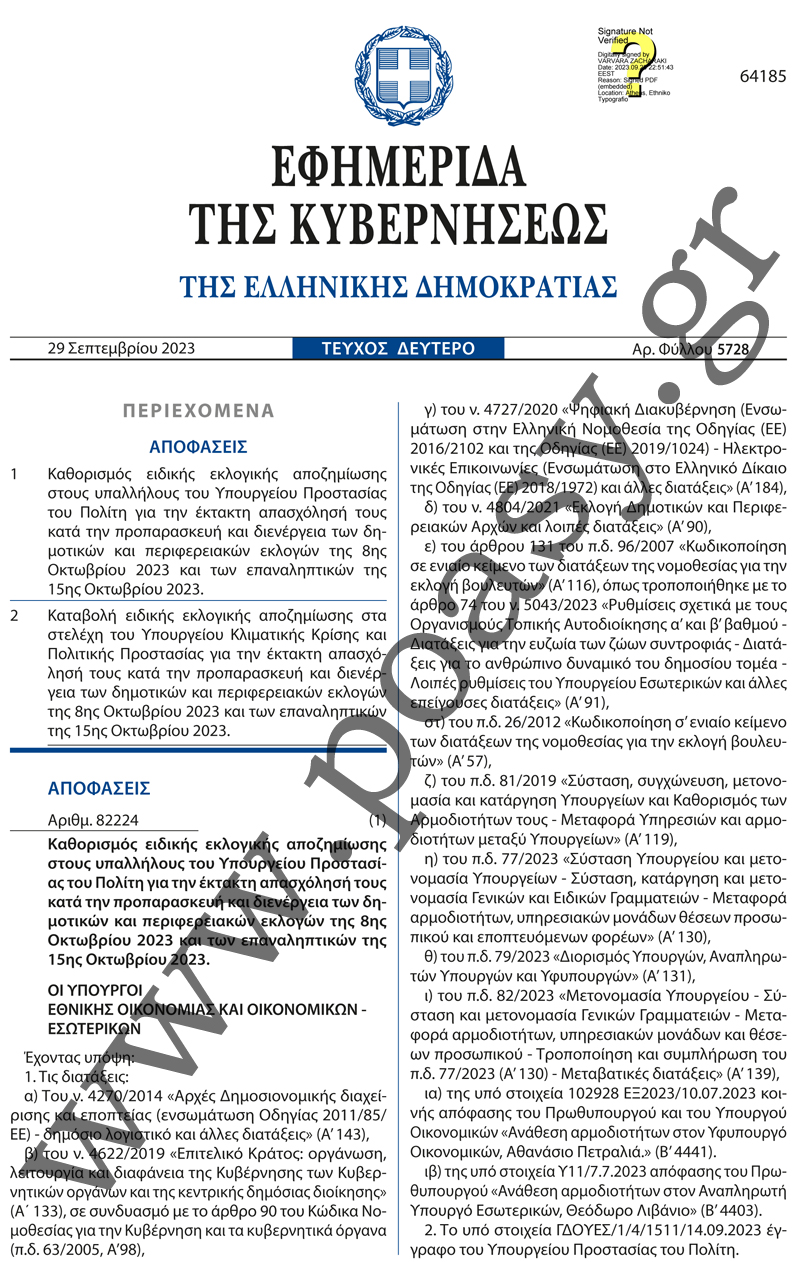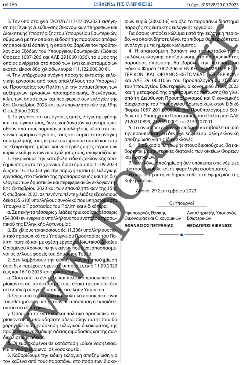 Το ΦΕΚ της εκλογικής αποζημίωσης!!!