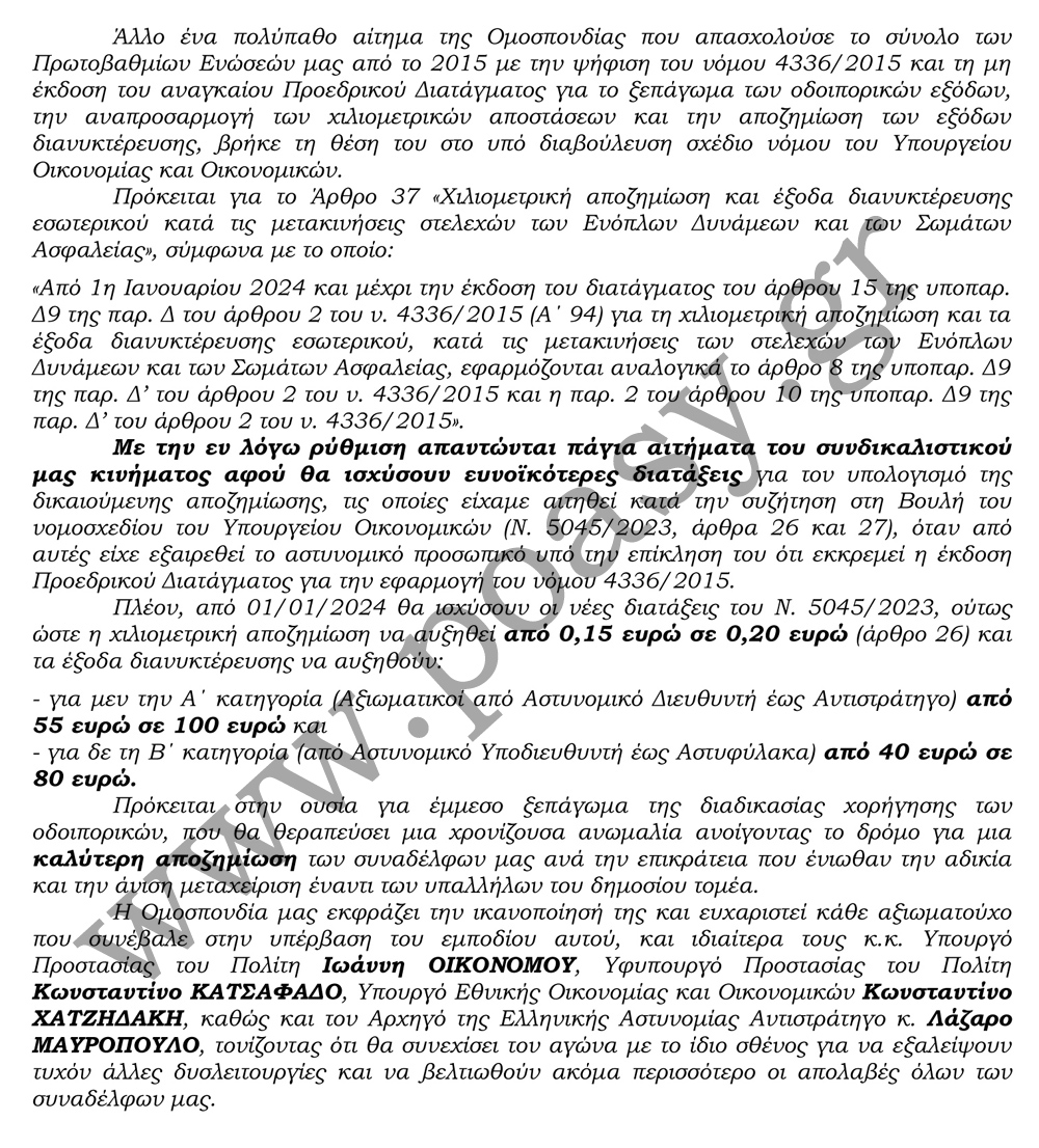 Αυξάνεται η αποζημίωση χιλιομετρικών αποστάσεων και διανυκτέρευσης
