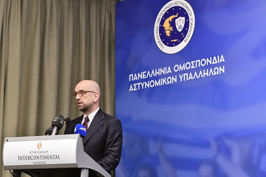 Καλωσορίζοντας τους παρισταμένους, ο Πρόεδρος της Ομοσπονδίας κ. Γρηγόρης ΓΕΡΑΚΑΡΑΚΟΣ, αναφέρθηκε στην προηγηθείσα αστυνομική επιχείρηση προσαγωγών δεκάδων υπόπτων για τη δολοφονία του συναδέλφου μας και εξέφρασε τα συγχαρητήρια όλων μας σε όσους και όσες συνέβαλαν σε αυτήν την θετική εξέλιξη. Δεν παρέλειψε, ωστόσο, να υπενθυμίσει ότι το Αστυνομικό Σώμα αιμορραγεί, όπως έδειξε και το πρόσφατο τραγικό συμβάν με το συνάδελφό μας που έχασε τη ζωή του στο μεροκάματο, πασχίζοντας για την επιβίωση.