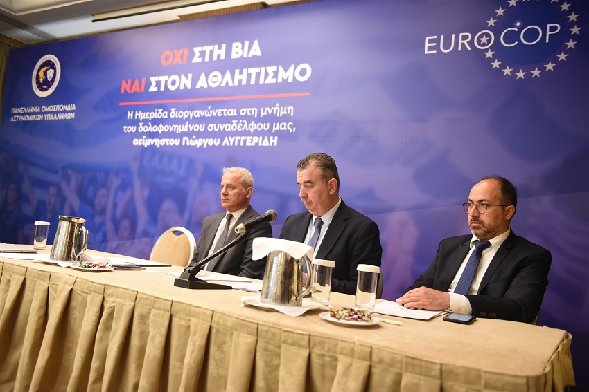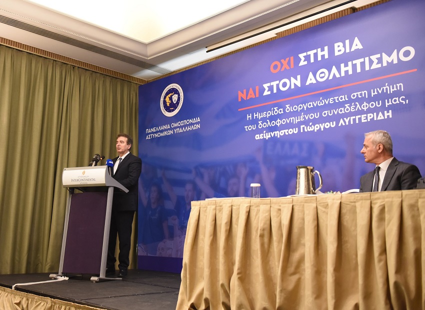 Με την ενδεδειγμένη τήρηση ενός λεπτού σιγή και τη λέξη ΑΘΑΝΑΤΟΣ να κυριαρχεί στις ομιλίες όλων των προσκεκλημένων, η Ομοσπονδία επιτελεί για άλλη μια φορά το χρέος της σε συνέχεια ανάλογων πρωτοβουλιών, διαβεβαιώνοντας ταυτόχρονα την οικογένεια του Γιώργου ΛΥΓΓΕΡΙΔΗ ότι, όχι μόνο δεν ξεχνά τη θυσία του, αλλά απαιτεί σθεναρά από την πολιτεία να θωρακίσει θεσμικά και οικονομικά το λειτούργημα του Έλληνα και της Ελληνίδας Αστυνομικού, ώστε να μην υπάρξουν άλλα θύματα.