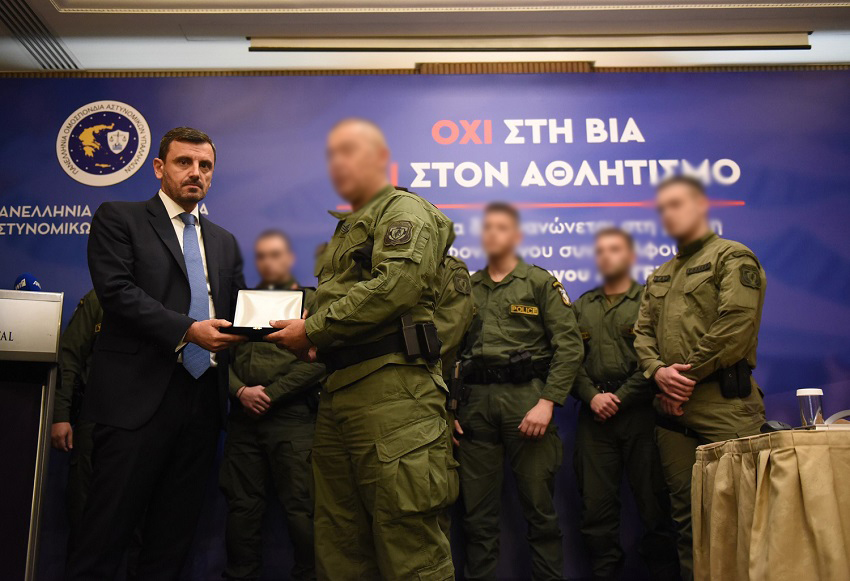 Για το πάντα επίκαιρο θέμα της οπαδικής βίας, επισήμανε το γεγονός ότι συνολικές προσπάθειες ετών για την αντιμετώπισή της έχουν πέσει στο κενό διότι ως πολιτεία και ως κοινωνία, δεν μας απασχολεί ο πυρήνας του προβλήματος. Ο αθλητισμός έχει εμπορευματοποιηθεί προ πολλού και το φίλαθλο πνεύμα έχει υποχωρήσει. Γι’ αυτό η Ομοσπονδία προβάλλει αυτήν τη διάσταση με αφορμή και την εξαγγελία του Αναπληρωτή Υπουργού Αθλητισμού, κ. Γιάννη ΒΡΟΥΤΣΗ, ότι προσεχώς θα ψηφιστεί ένας νέος νόμος πλαίσιο για τον αθλητισμό. Τάχθηκε δε υπέρ του διαλόγου όλων των αθλητικών, των συνδικαλιστικών και των κοινωνικών φορέων, αλλά και της τοπικής αυτοδιοίκησης, ώστε να προκύψει ένα αποτελεσματικό νομοθέτημα, κάνοντας πράξη και όσα ήδη προβλέπονται από τη νομοθεσία, όπως είναι τα Προγράμματα και οι Εκδηλώσεις Άθλησης για Όλους, συμπεριλαμβανομένων των αστυνομικών.