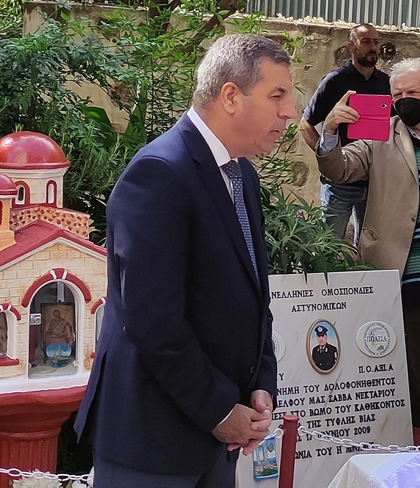 Τέλος, ο Δήμαρχος Αθηναίων κ. Κώστας ΜΠΑΚΟΓΙΑΝΝΗΣ, έστειλε το δικό του μήνυμα τονίζοντας ότι σήμερα είναι «ημέρα τιμής, ημέρα μνήμης, ημέρα λύπης για όλους εμάς και κυρίως για την οικογένειά του που ξέρω πολύ καλά ότι θα ήταν πολύ υπερήφανος για όλα όσα έχετε καταφέρει, μένοντας όρθιες σε πείσμα των δυσκολιών. Είμαστε όλοι εδώ γιατί δεν επιτρέπεται να ξεχάσουμε, είναι το χρέος μας. Ο δήμος έκανε το αυτονόητο καθήκον του, διερμηνεύοντας τα αισθήματα όλων των Αθηναίων πέρα και πάνω από κόμματα και ιδεολογίες. Σήμερα πρέπει όλοι να είμαστε ενωμένοι σαν μια γροθιά για την ασφάλεια όλων μας, για την οφειλόμενη στήριξη στους Έλληνες και τις Ελληνίδες αστυνομικούς και πάνω από όλα για την ίδια την κοινωνία».