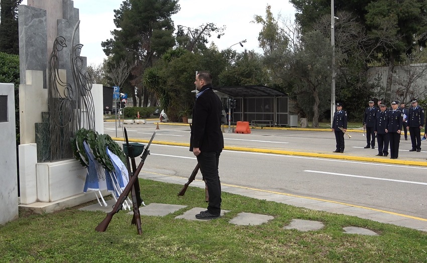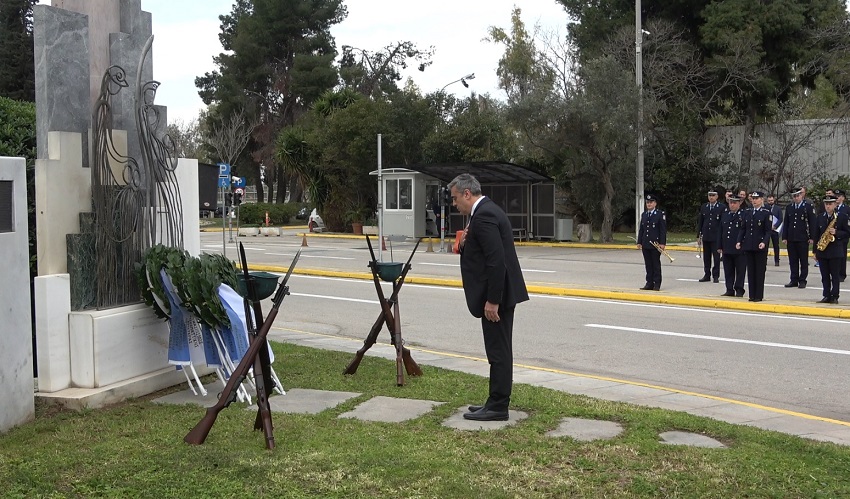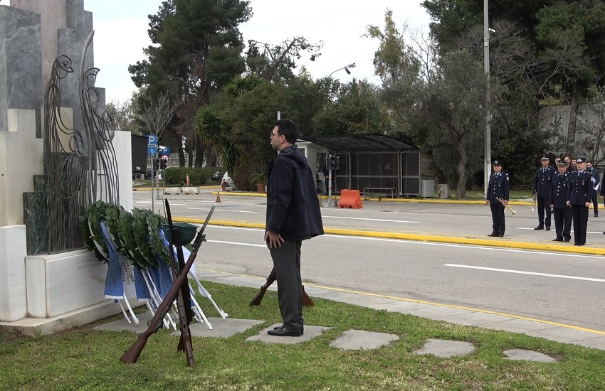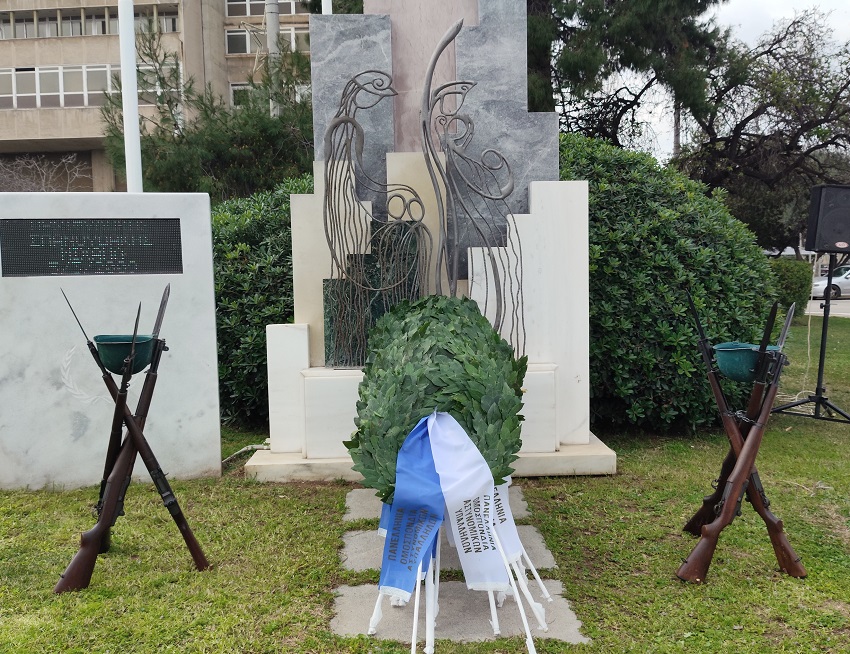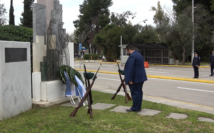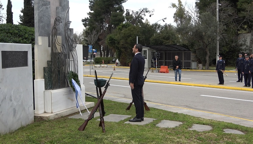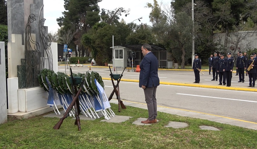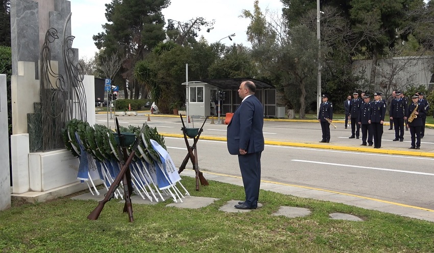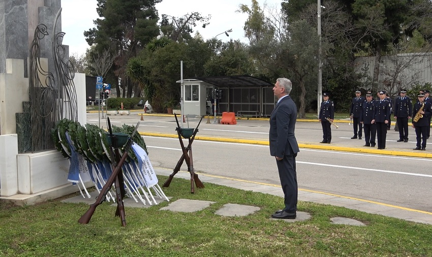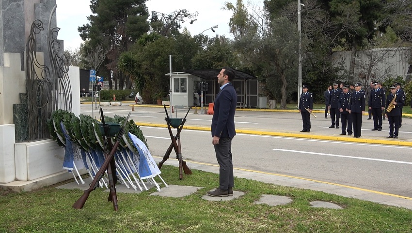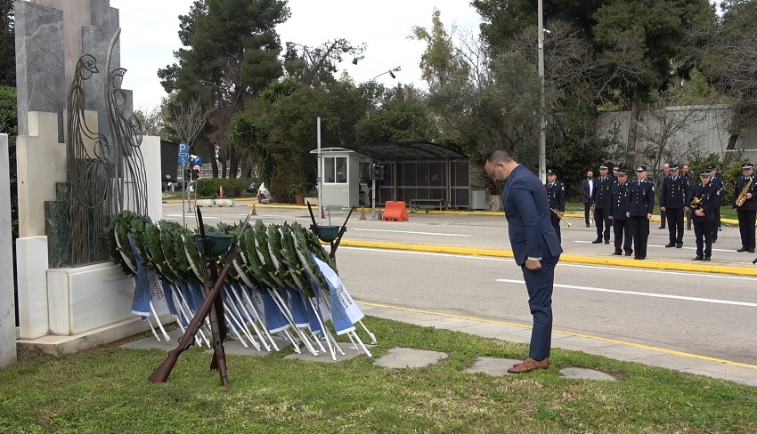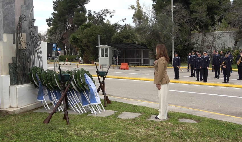 Ακολούθησε κατάθεση στεφάνων στο Μνημείο Πεσόντων που κοσμεί τον προαύλιο χώρο του Υπουργείου Προστασίας του Πολίτη από τους κ.κ.: Υφυπουργό Προστασίας του Πολίτη κ. Ανδρέα ΝΙΚΟΛΑΚΟΠΟΥΛΟ, Εκπρόσωπο Προέδρου ΣΥΡΙΖΑ - Προοδευτική Συμμαχία, Βουλευτή κ. Κωνσταντίνο ΜΠΑΡΚΑ, Εκπρόσωπο του Προέδρου του ΠΑΣΟΚ - Κινήματος Αλλαγής, Βουλευτή κα Νάντια ΓΙΑΝΝΑΚΟΠΟΥΛΟΥ, Εκπρόσωπο του Κόμματος ΣΠΑΡΤΙΑΤΕΣ, Βουλευτή κ. Αθανάσιο ΧΑΛΚΙΑ, Εκπρόσωπο του Κόμματος Πλεύση Ελευθερίας κ. Χρήστο ΑΡΙΔΑ, Εκπρόσωπο του Περιφερειάρχη Αττικής, Αντιπεριφερειάρχη Δυτικού Τομέα Αθηνών κ. Βασίλειο ΛΩΛΟ, Εκπρόσωπο του Δημάρχου Αθηναίων, Αντιδήμαρχο κ. Κωνσταντίνο ΓΙΑΝΝΑΡΟ, Αρχηγό της Ελληνικής Αστυνομίας, Αντιστράτηγο κ. Δημήτριο ΜΑΛΛΙΟ, Γραμματέα της Πανελλήνιας Ομοσπονδίας Ενώσεων Υπαλλήλων Πυροσβεστικού Σώματος κ. Νικόλαο ΛΑΥΡΑΝΟ, Πρόεδρο της Ένωσης Αξιωματικών Πυροσβεστικού Σώματος κ. Κωνσταντίνο ΤΣΙΓΚΑ, Πρόεδρο της Πανελλήνιας Ομοσπονδίας Ενώσεων Προσωπικού Λιμενικού Σώματος κ. Παναγιώτη ΤΣΙΑΝΟ, Ταμία της Πανελλήνιας Ένωσης Αξιωματικών Λιμενικού Σώματος κ. Ιωάννη ΠΑΓΑΝΗ, Πρόεδρο της Πανελλήνιας Ομοσπονδίας Ενώσεων Στρατιωτικών κ. Δημήτριο ΡΩΤΑ, Πρόεδρο της Πανελλήνιας Ομοσπονδίας Πολιτικού Προσωπικού Υ.Δ.Τ. κ. Παύλο ΜΑΥΡΙΔΗ, Γ’ Αντιπρόεδρο Δ.Σ. του Ελληνικού Εθνικού Τμήματος Διεθνούς Ένωσης Αστυνομικών κα Ειρήνη ΜΑΚΡΥΔΑΚΗ, Πρόεδρο της Πανελληνίου Ομοσπονδίας Αποστράτων Σωμάτων Ασφαλείας κ. Ευάγγελο ΧΡΙΣΤΑΚΟΠΟΥΛΟ, Πρόεδρο του Δ.Σ. ΠΟΚΕΑ Καθηγητή κ. Γεράσιμο ΚΑΡΑΜΠΕΛΙΑ, Πρόεδρο της Π.Ο.ΑΞΙ.Α. κ. Ανδρέα ΒΕΛΛΙΟ, καθώς και από τον Πρόεδρο της Π.Ο.ΑΣ.Υ. κ. Γρηγόριο ΓΕΡΑΚΑΡΑΚΟ.