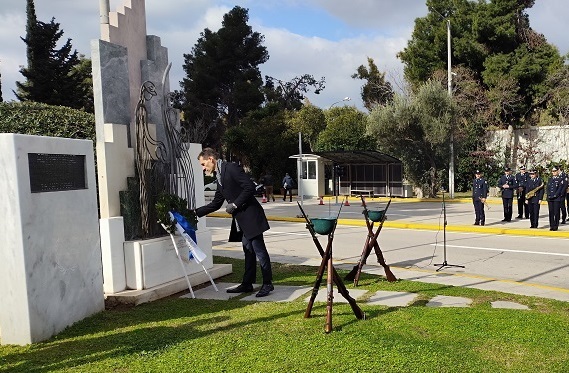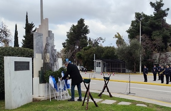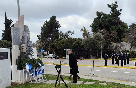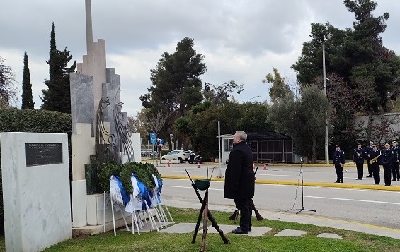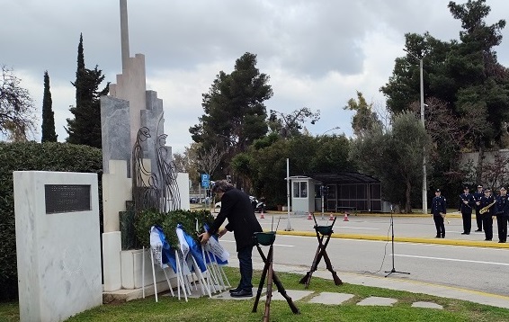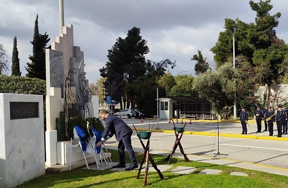 Ακολούθησε κατάθεση στεφάνων στο Μνημείο Πεσόντων που κοσμεί τον προαύλιο χώρο του Υπουργείου Προστασίας του Πολίτη από τους κ.κ.: